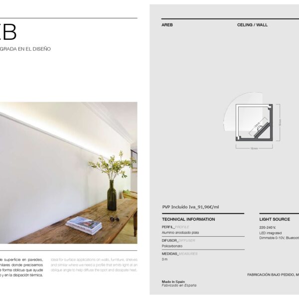 El perfil LED IKON BELGA ha sido diseñado para ofrecer una iluminación uniforme, duradera y con carácter arquitectónico. Su estructura de aluminio anodizado de alta calidad, disponible en acabados plata, blanco y negro, asegura resistencia y versatilidad en cualquier tipo de instalación.