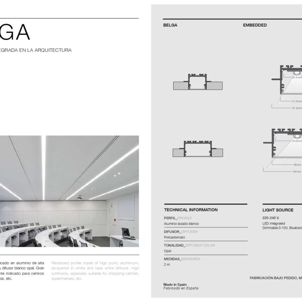 Gracias a la tecnología LED IKON®, el BELGA garantiza eficiencia energética, durabilidad y un acabado profesional, posicionándose como una de las soluciones más completas dentro de la perfilería de superficie.