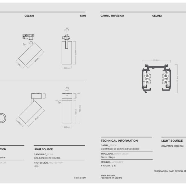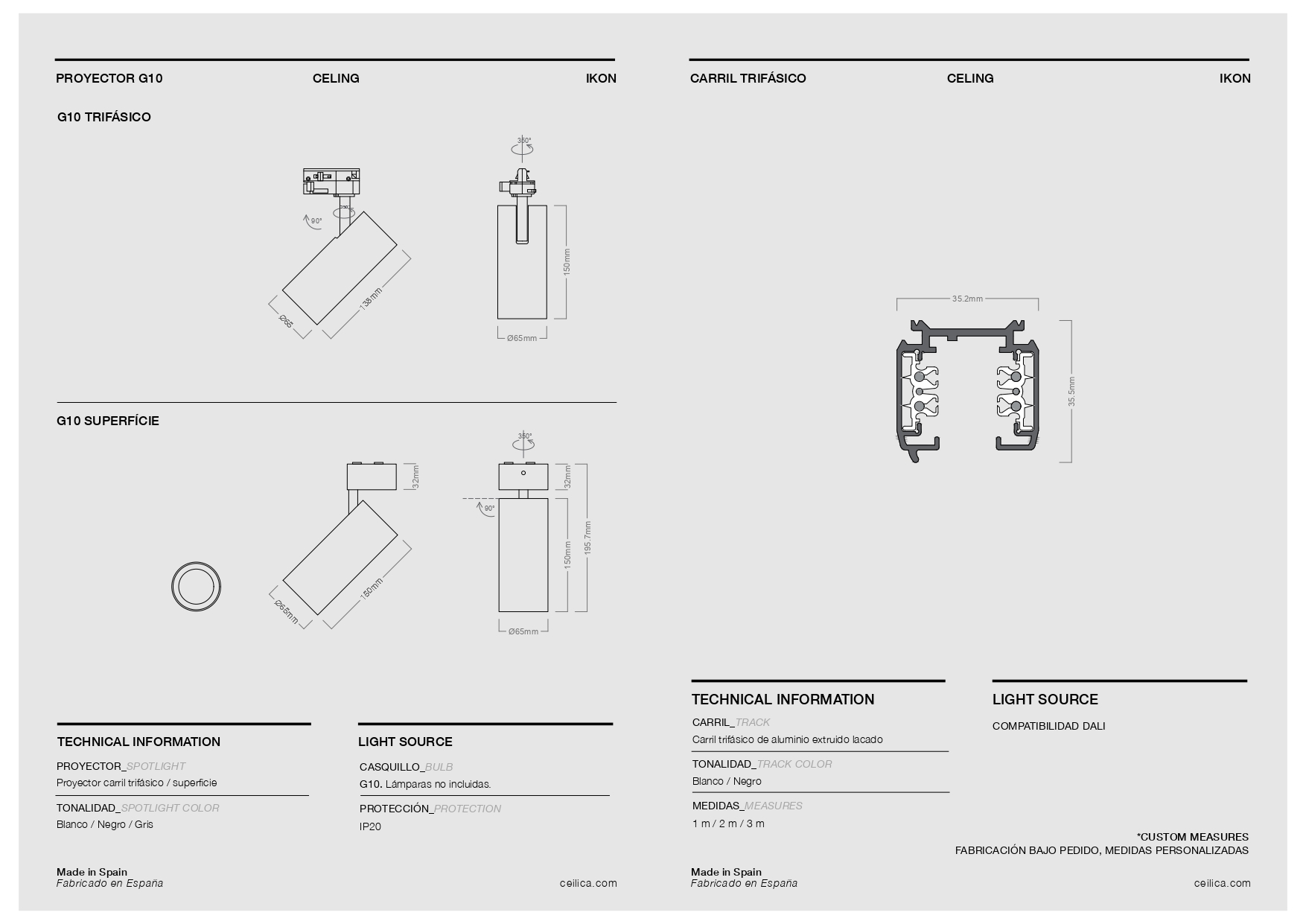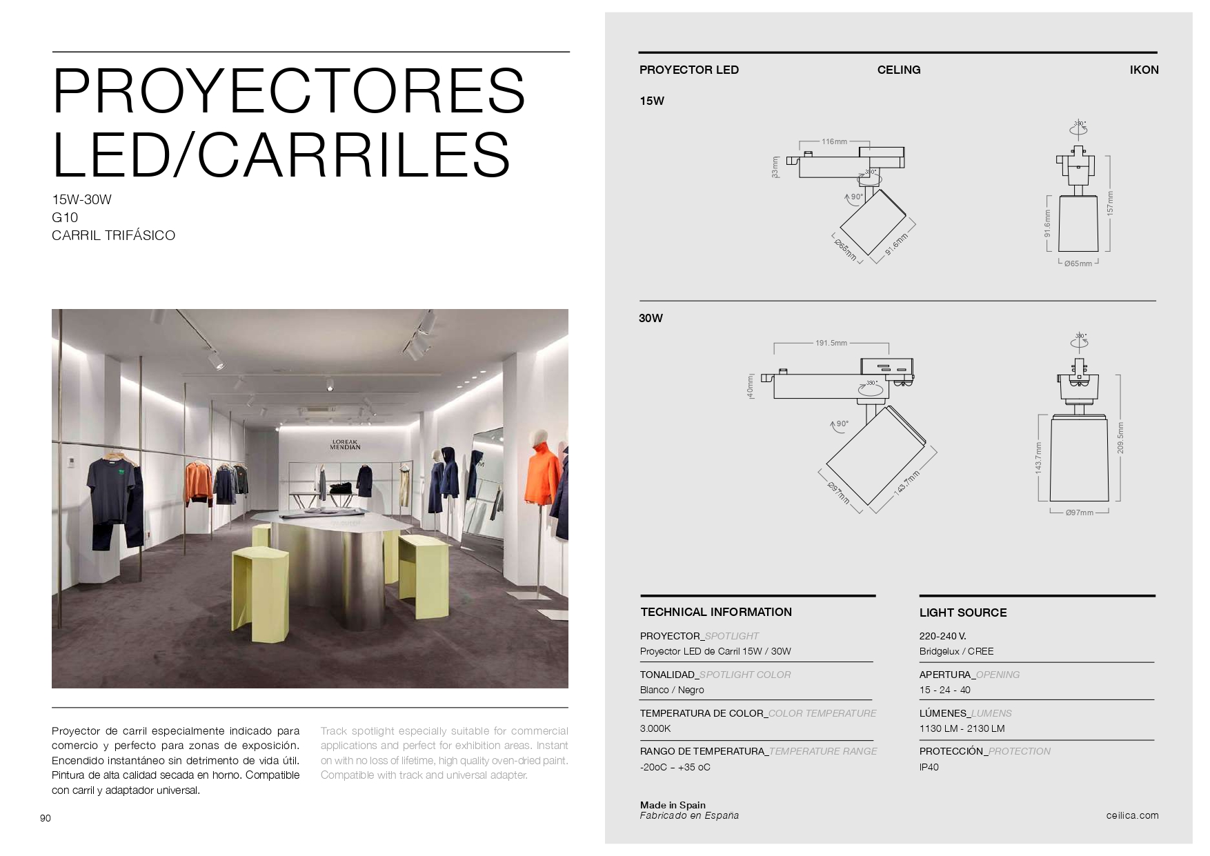 Gracias a su instalación en carril trifásico, permiten una colocación flexible, con la posibilidad de ajustar y orientar el haz de luz según las necesidades de cada proyecto. Están disponibles en potencias de 15W y 30W, con temperaturas de color cálidas (3000K) o neutras (4000K), ofreciendo así la atmósfera ideal para retail, oficinas, galerías o espacios arquitectónicos.